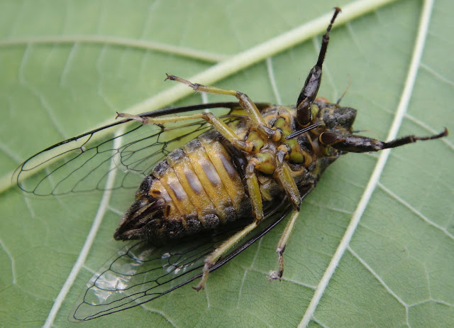 而之前已記錄到草蟬中最常見的綠色型草蟬、及不多的黃褐色型草蟬,今天很高興記錄到這少許的黑褐色型草蟬(雌蟲),拍照記錄如下: